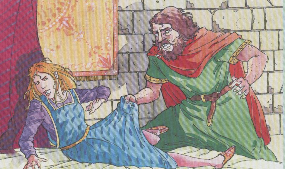 Nesse vaivém as ideias iam-se tornando cada vez mais agressivas. Queria estrangular o rei, incendiar-lhe as florestas, destruir-lhe o palácio, mas ainda não era suficiente. A sua filha, a sua linda filha criada com tanto carinho, uma rapariga sem maldade nenhuma, fora vítima do homem que devia protegê-la.... Só mesmo arrasando o reino se sentiria vingado!